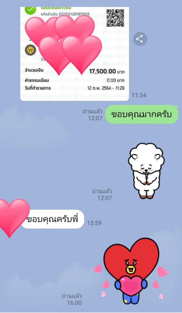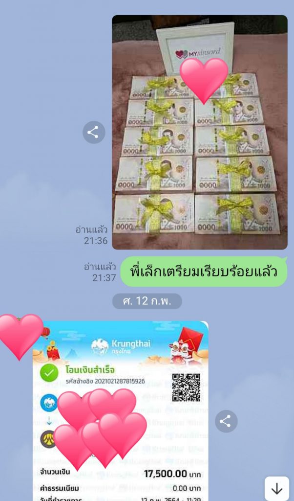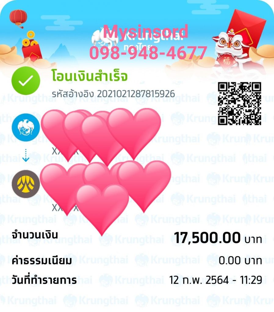 โปรโมชั่นพิเศษ!!! เช่าเงินสินสอด 1,000,000 บาท ราคาเพียง 30,000 บาทเท่านั้น!!! คุณลูกค้าโอนเงินค่าเช่าสินสอด 17,500 บาท และ 10,000 บาท ทีมงาน #MySinsord ขอขอบพระคุณลูกค้าที่น่ารัก ไว้วางใจเลือกจองโปรโมชั่นพิเศษนี้ครับ เคสนี้ ทีมงานนำส่งสินสอดให้คู่บ่าวสาวไกลถึงจังหวัดหนึ่งทางภาคกลาาง #MySinsord พร้อมส่งสินสอดทองหมั้นทั่วประเทศ ไม่ว่าจะใกล้หรือไกล เรายินดีบริการด้วยใจให้ดีที่สุด และตรงต่อเวลาครับ เพียงคุณเตรียมแค่พาน ส่วนสินสอดทองหมั้นให้เราดูแล ทีมงานขออนุญาติรีวิวเพียงเท่านี้นะครับ ไม่มีรูปบรรยากาศในงาน ไม่มีวันที่จัดงาน และไม่บอกสถานที่ เพราะ #MySinsord ยึดมั่นความลับของลูกค้าสำคัญที่สุดครับ
