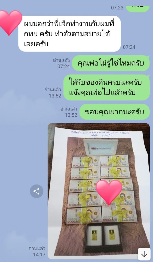 Previous Post โปรโมชั่นถูกที่สุด เงินสินสอด 1,000,000 บาท ทองคำแท่ง 10 บาท ราคาเพียง 35,000 บาท ขอบคุณคุณลูกค้าที่มอบความไว้วางใจ ชำระเงินค่ามัดจำเช่าสินสอด 10,000 บาท งานแต่งจัดในจังหวัดหนึ่งทางภาคใต้ ซึ่งทีมงานต้องขึ้นเครื่องบิน เช่ารถยนต์ เช่าโรงแรม เพื่อส่งมอบสินสอดให้คู่บ่าวสาวถึงที่จัดงาน ความลับของลูกค้าสำคัญที่สุด ไม่ว่าจะใกล้หรือไกล เรา mysinsord บริการด้วยใจ เราจะบริการให้ดีที่สุด จัดส่งสินสอดทั่วประเทศ