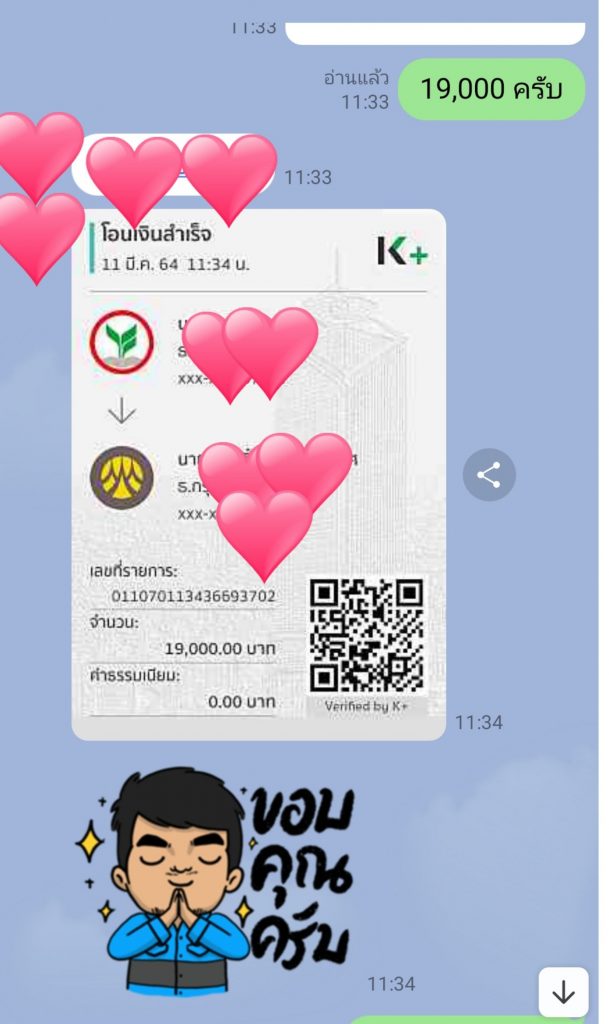 ขอบคุณคุณลูกค้าที่มอบความไว้วางใจ ชำระเงินค่าเช่าสินสอด 19,000 บาท (โปรโมชั่นถูกที่สุด เงินสินสอด 500,000 บาท ทองคำแท่ง 5 บาท ราคาเพียง 20,000 บาท) งานแต่งจัดในจังหวัดหนึ่งทางภาคอีสาน ซึ่งทีมงานต้องขึ้นเครื่องบิน เช่ารถยนต์ เช่าโรงแรม เพื่อส่งมอบสินสอดให้คู่บ่าวสาวถึงที่จัดงาน ความลับของลูกค้าสำคัญที่สุด ไม่ว่าจะใกล้หรือไกล เรา mysinsord บริการด้วยใจ เราจะบริการให้ดีที่สุด จัดส่งสินสอดทั่วประเทศ