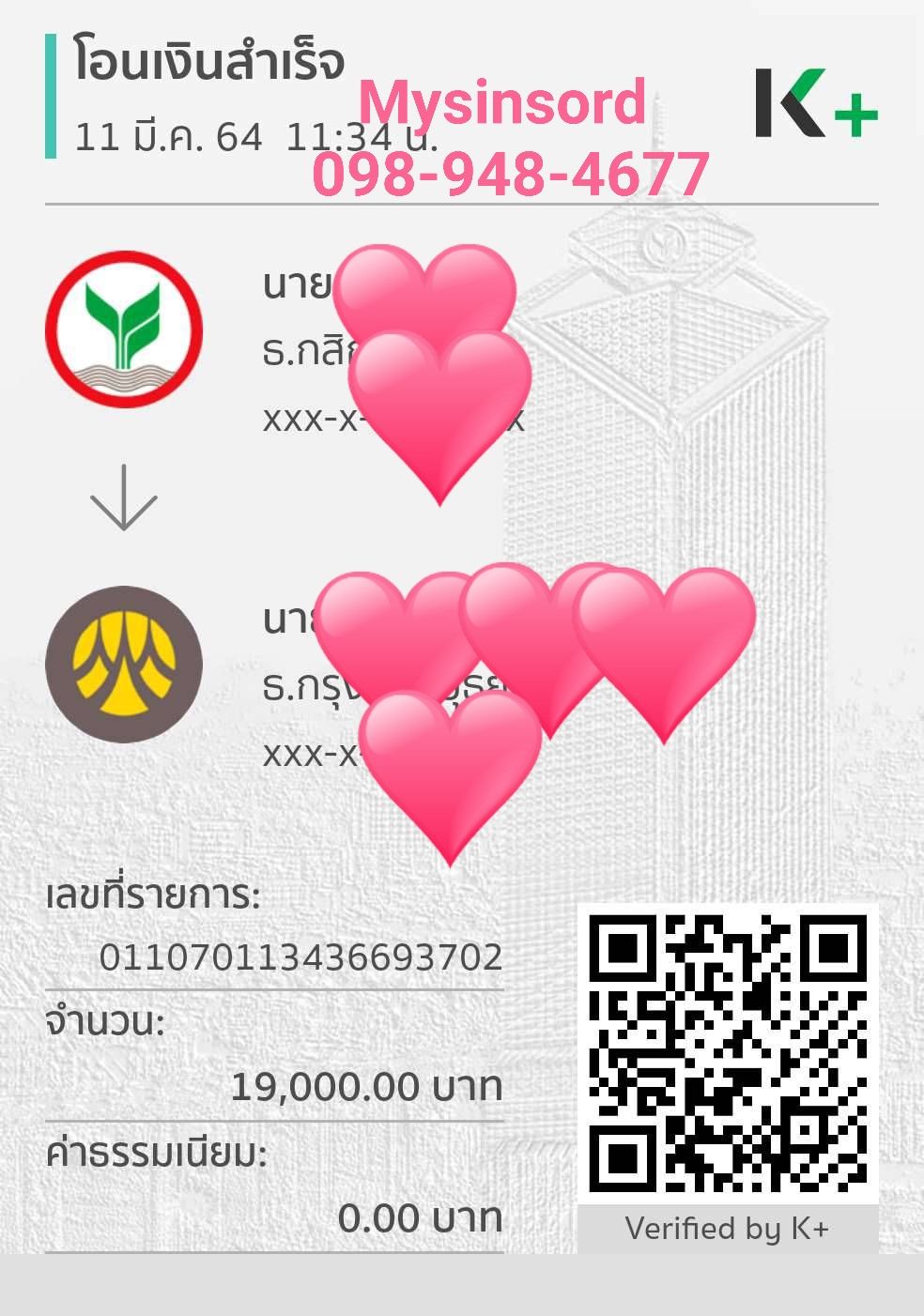 ขอบคุณคุณลูกค้าที่มอบความไว้วางใจ ชำระเงินค่าเช่าสินสอด 19,000 บาท (โปรโมชั่นถูกที่สุด เงินสินสอด 500,000 บาท ทองคำแท่ง 5 บาท ราคาเพียง 20,000 บาท) งานแต่งจัดในจังหวัดหนึ่งทางภาคอีสาน ซึ่งทีมงานต้องขึ้นเครื่องบิน เช่ารถยนต์ เช่าโรงแรม เพื่อส่งมอบสินสอดให้คู่บ่าวสาวถึงที่จัดงาน ความลับของลูกค้าสำคัญที่สุด ไม่ว่าจะใกล้หรือไกล เรา mysinsord บริการด้วยใจ เราจะบริการให้ดีที่สุด จัดส่งสินสอดทั่วประเทศ