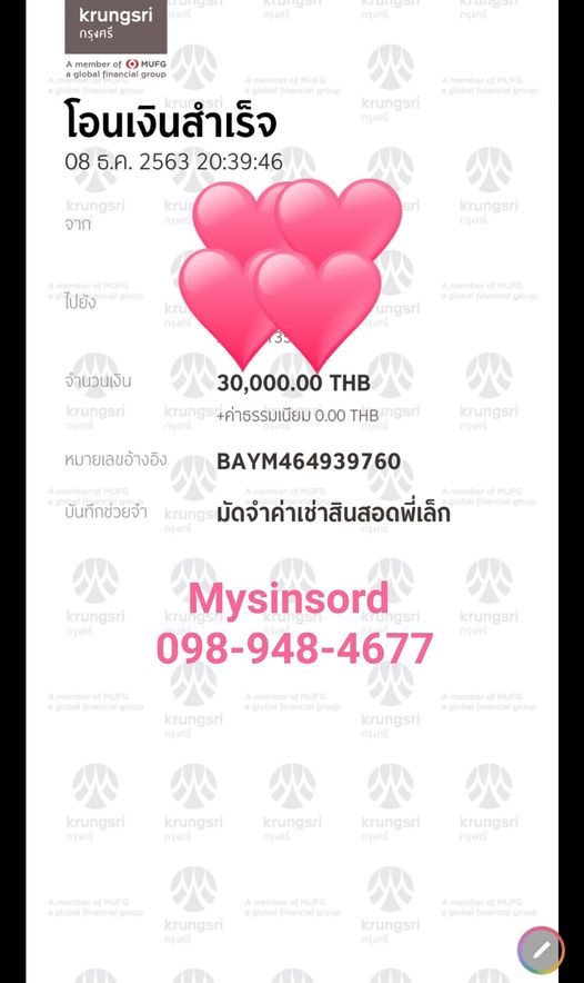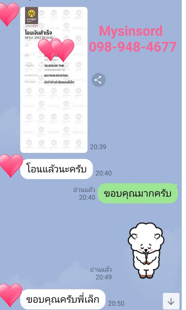 Next Post ขอบคุณลูกค้าที่มอบความไว้วางใจ ใช้บริการ mysinsord ชำระค่าเช่าสินสอดจำนวน 70,000 บาท (โปรโมชั่นเช่าเงินสด 5,000,000 บาท ทองคำแท่ง 50 บาท) ความลับของลูกค้าสำคัญที่สุด ไม่ว่าจะใกล้หรือไกล เรา mysinsord บริการด้วยใจ เราจะบริการให้ดีที่สุด จัดส่งสินสอดทั่วประเทศ